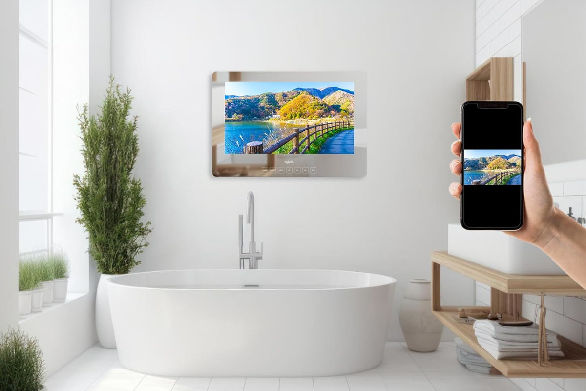 I remember the first time I saw a bathroom mirror with a built-in TV. I was at a ski lodge in Vail and called Barry to come see it. Amazing, but the embedded TV was tiny and the sound muffled. Today’s smart mirrors are so much better. I’ll tell you the one I got below.