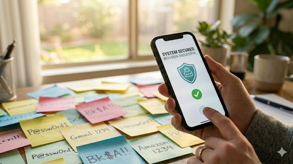 That’s where passkeys come in. A passkey is a unique encrypted key that lives on your device. You unlock it with your face or fingerprint. Nothing to type. Nothing to steal. No database storing your credentials that can get hacked.
