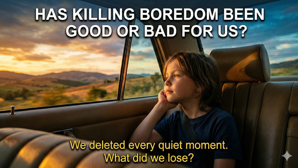 We have done something no other generation in human history has done. We eliminated boredom. Completely. Every idle moment, every waiting room, every quiet car ride, every line at the grocery store gets filled with a screen.